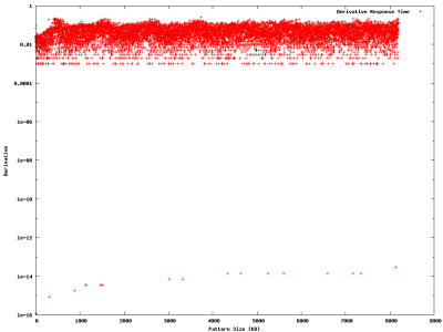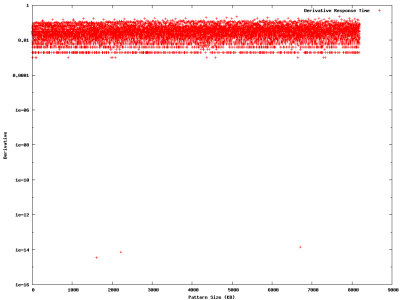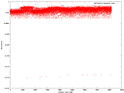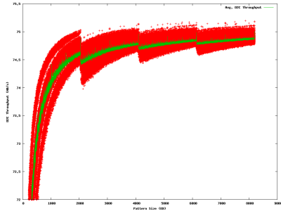 Although these graphs show that there is a clear pattern size of 256KB, If we plot the same graph with a much more small scale, we can see that there are also more hidden pattern size at this scale.